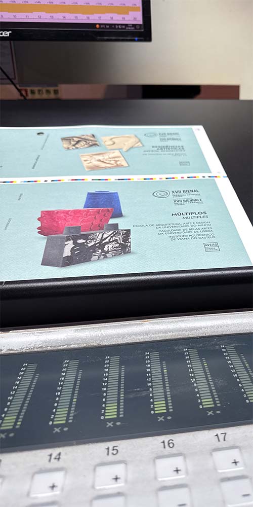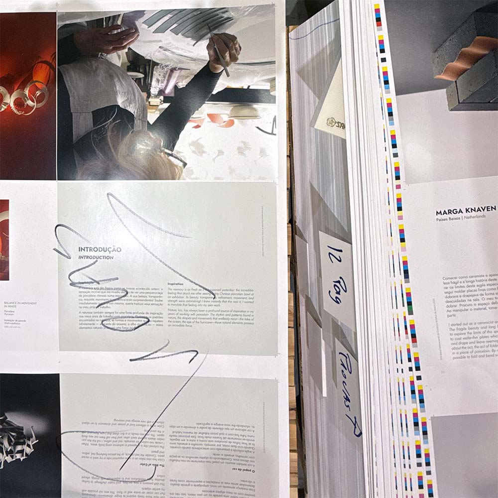 No plano técnico, conduzimos prototipagem com maquetas físicas, testes de gramagem e dobragem, testes de encadernação, ensaios de manuseamento e provas de cor. Acompanhámos a impressão em máquina com medições consistentes e controlo de registo, inspeccionámos acabamento, corte e montagem para um resultado final irrepreensível.