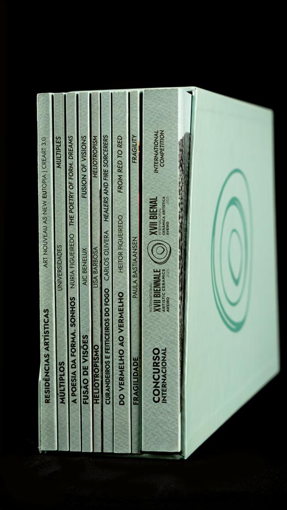 A Exxa Design Studio desenhou, paginou e criou o conjunto de catálogos em caixa que acompanha as exposições da Bienal Internacional de Cerâmica Artística de Aveiro 2025, o programa oficial do evento e um último catálogo pensado para os hotéis da cidade. Um corpo editorial coeso, com linguagem visual própria, que respeita a singularidade de cada exposição e facilita a leitura, a fruição e a colecionabilidade.