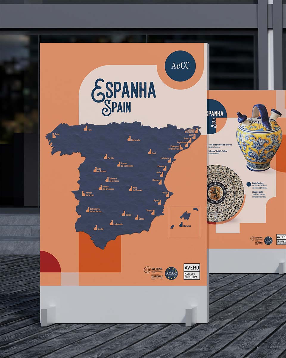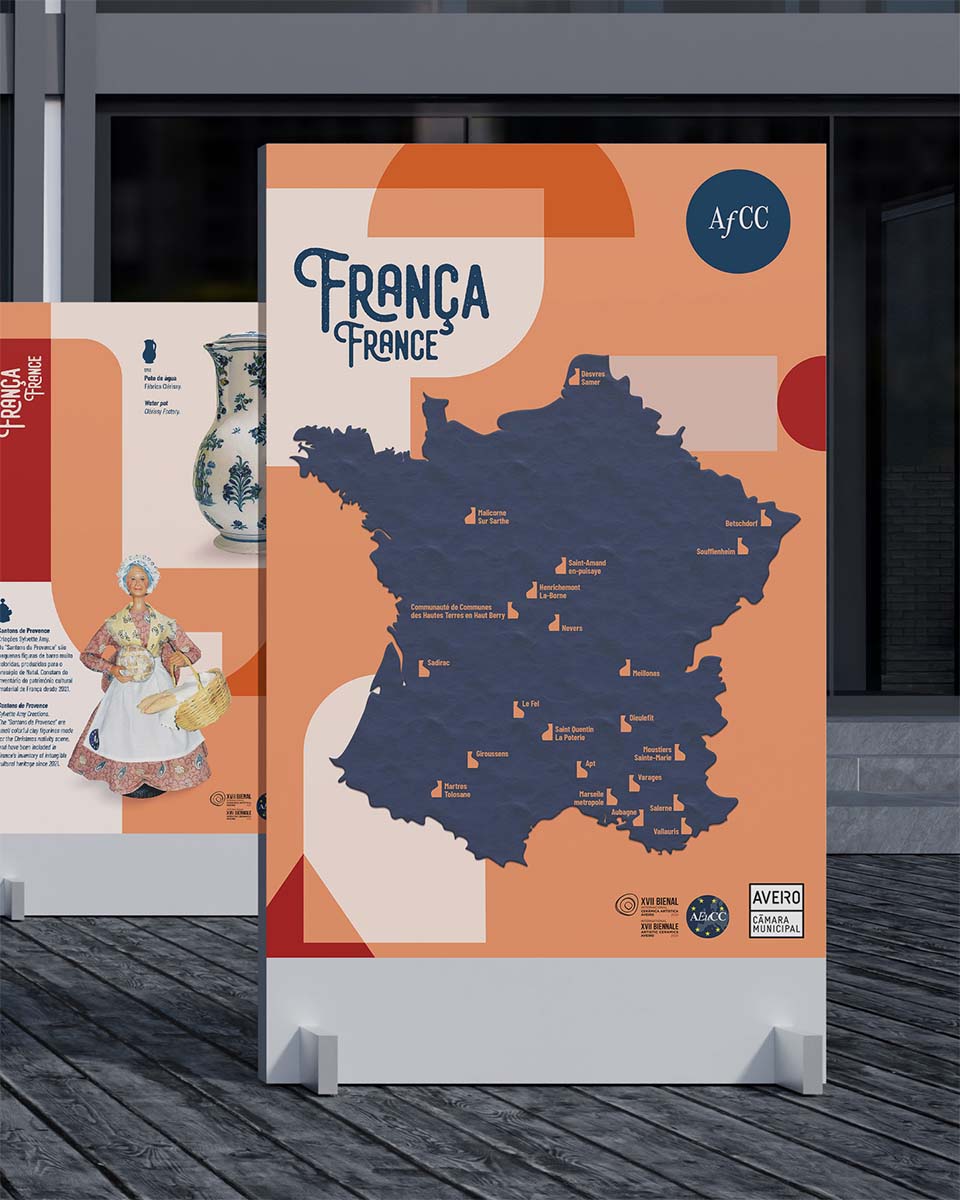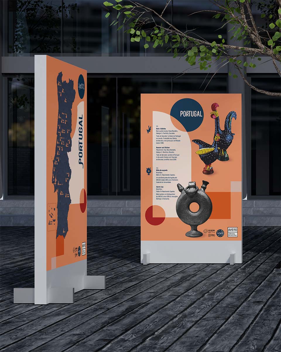 Em conjunto com a Divisão de Cultura da Câmara Municipal, na pessoa da Drª Ana Gomes, criamos a imagem desta exposição, remetendo para um roteiro que expressa a identidade e o vasto património cultural europeu, fruto de um longo e rico passado comum dos membros da AEuCC (Agrupamento Europe de Cooperação Territorial de Cidades da Cerâmica).